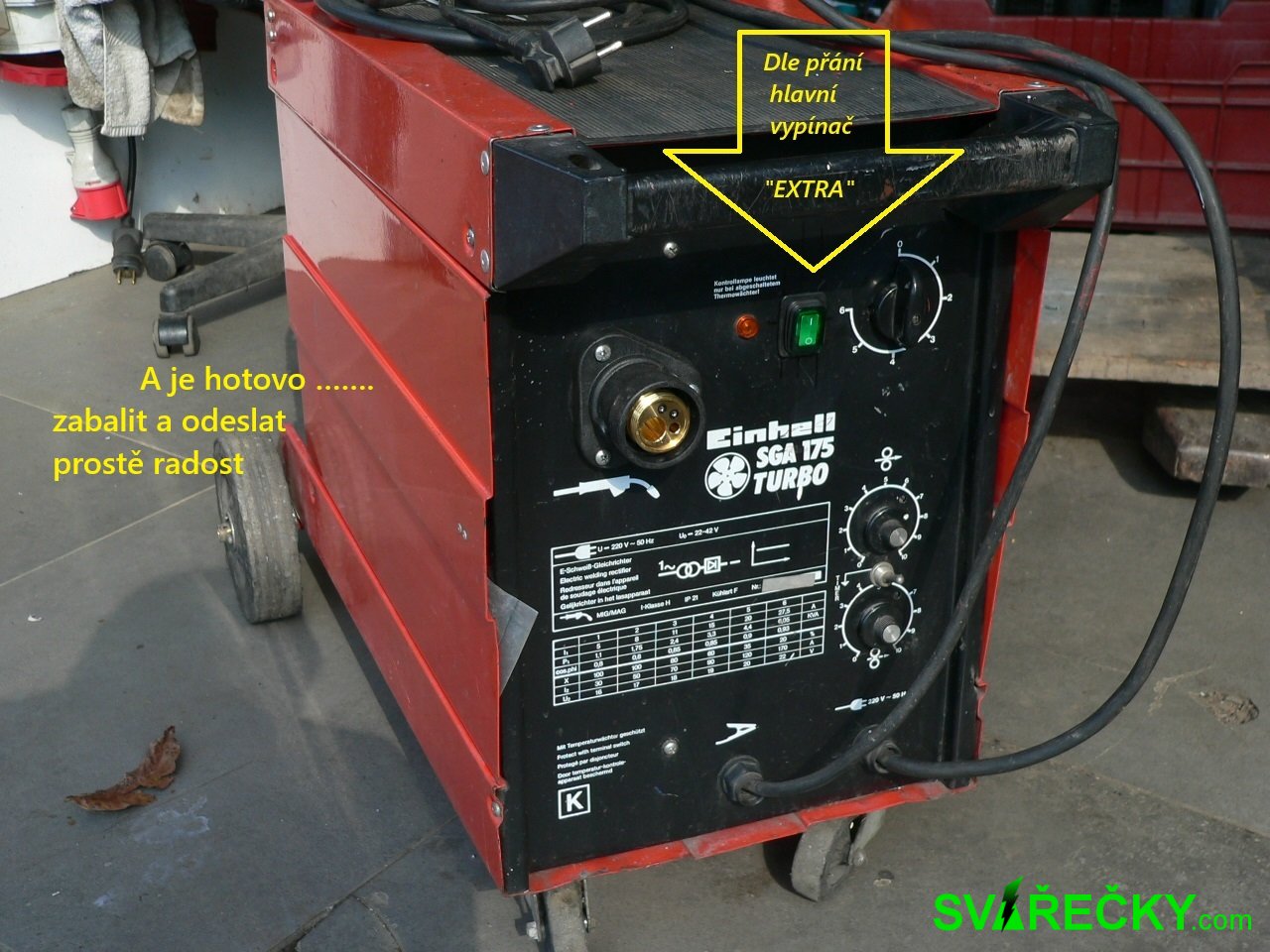 2. doplnit svářečku o hlavní vypínač tak, aby pán nemusel při vypínání neustále "vexlovat" přepinačem výkonu za účelem vypnutí zdroje